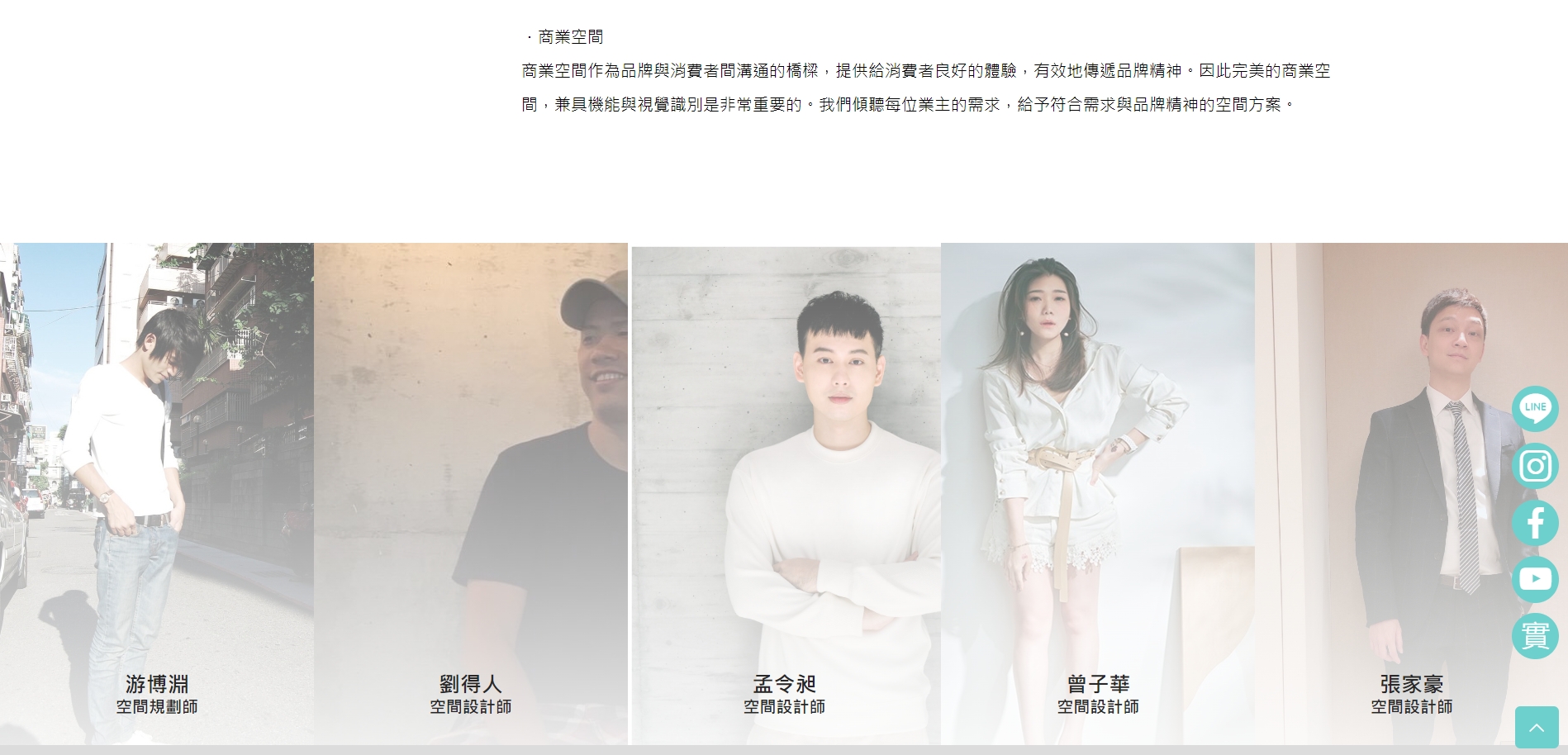 在裝潢設計的網頁架構中不只能看到品牌提供的服務內容,也能查看空間設計師的經歷與設計理念,幫助消費者初步挑選合適的設計師。